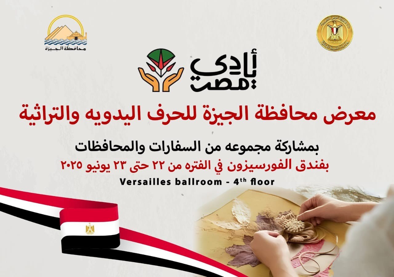 تفتتح محافظة الجيزة غدًا الأحد معرض الحرف التراثية والمنتجات اليدوية بمشاركة مجموعة من السفارات والمحافظات، حيث يقام على مدار يومين بشكل مجاني للجمهور، بفندق الفورسيزون بحي جنوب.