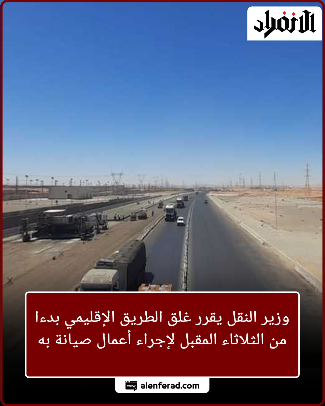 كما وافق المجتمعون على غلق كلي مؤقت للاتجاه القادم من تقاطع الإقليمي مع الإسكندرية الصحراوي وحتى تقاطع الاقليمي مع طريق السويس الصحراوي لمدة أسبوع بدءاً من الساعة السادسة صباحاً يوم الثلاثاء الموافق 8 يوليو 2025 وذلك لتدعيم وتحسين ورفع كفاءة وسائل التحكم المروري والسلامة المرورية للتحويلات المؤقتة.